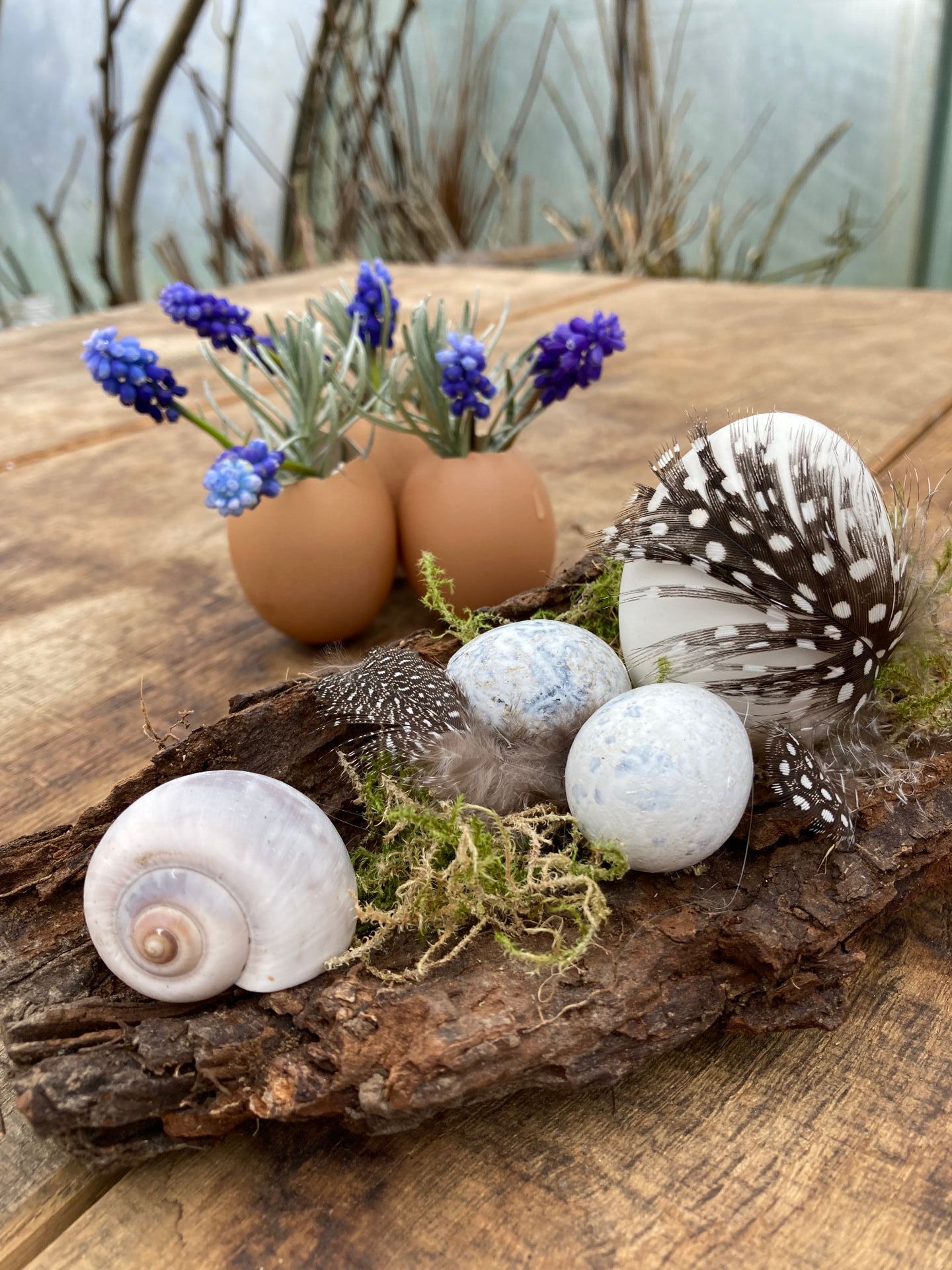 - Steine, Moos und Hölzer zur Dekoration